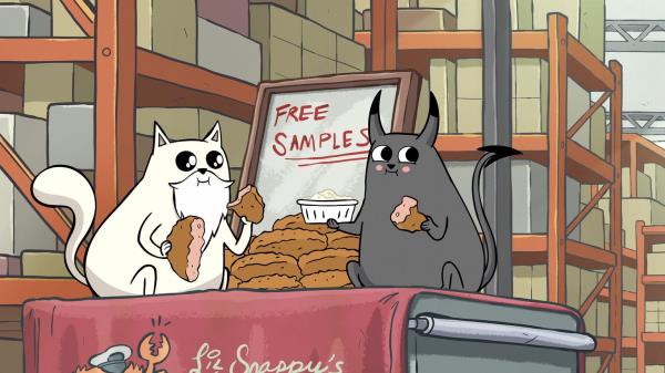 除此之外,《爆炸小猫》里已经没什么东西了。优点包括剧集的长度。它们足够短,可以作为“睡前快速看Netflix”或“下班后做饭时的一集”。不幸的是,这个公式的轻盈并不像它应该的那样优雅,而笑话往往是不成功的。也许给猫开罐头会更有趣,或者更确切地说,对不起,我本想写给猫主人的。虽然猫用毛茸茸的爪子把桌子和架子边上的东西碰掉的事实对我来说并不陌生,但重复几次的笑话就失去了吸引力。同样,必不可少的吐绒毛或在猫薄荷中打滚——很有趣,但在互联网上的猫视频很难让人惊讶的时候,这就不是时候了。